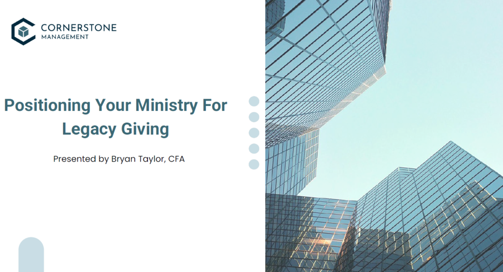 - Legacy Giving: Position your organization for a strong charitable investment future.