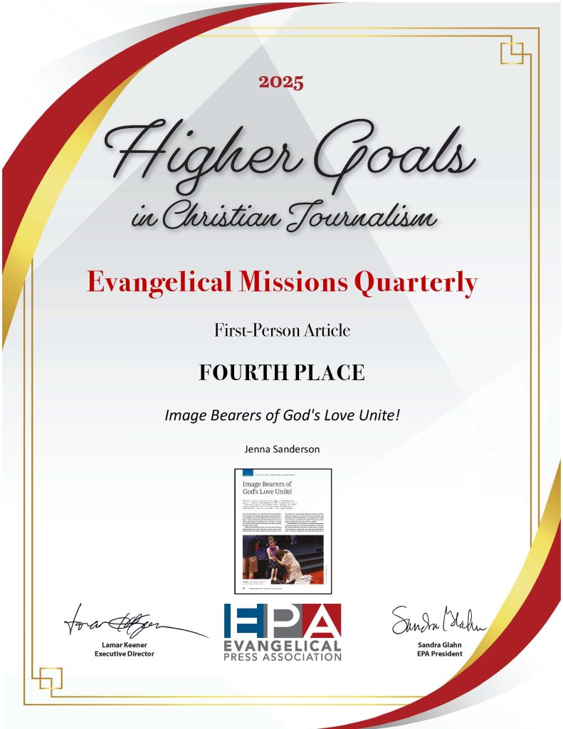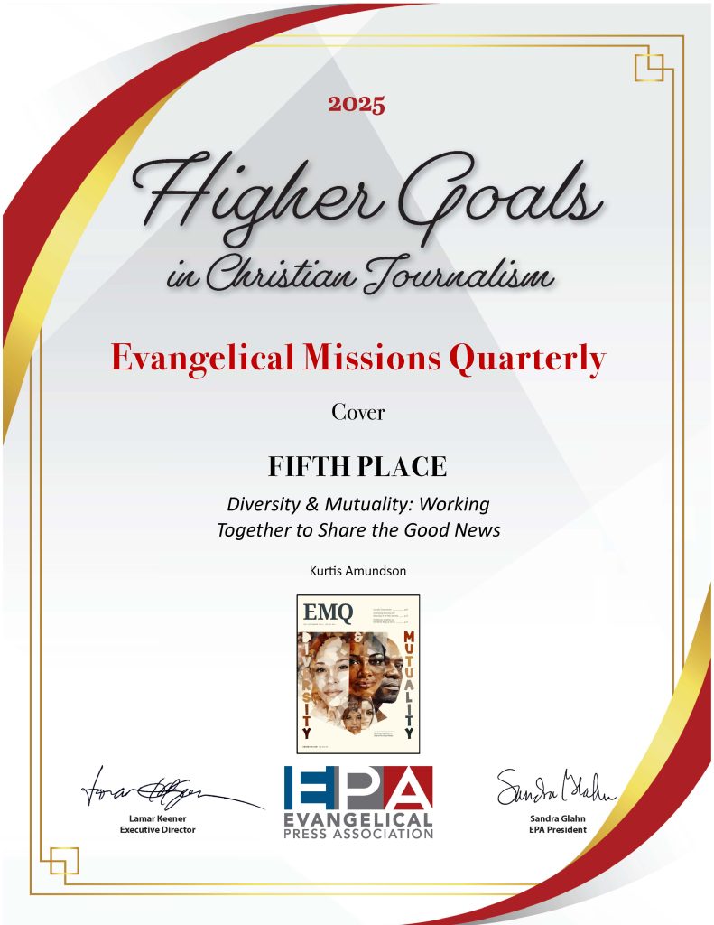 Mission Nexus is proud to announce that Evangelical Missions Quarterly (EMQ) has once again been recognized for excellence in Christian journalism at the 2025 Evangelical Press Association (EPA) Awards. EMQ received two prestigious accolades in the Higher Goals Awards, which celebrate outstanding work in individual categories across EPA member publications.