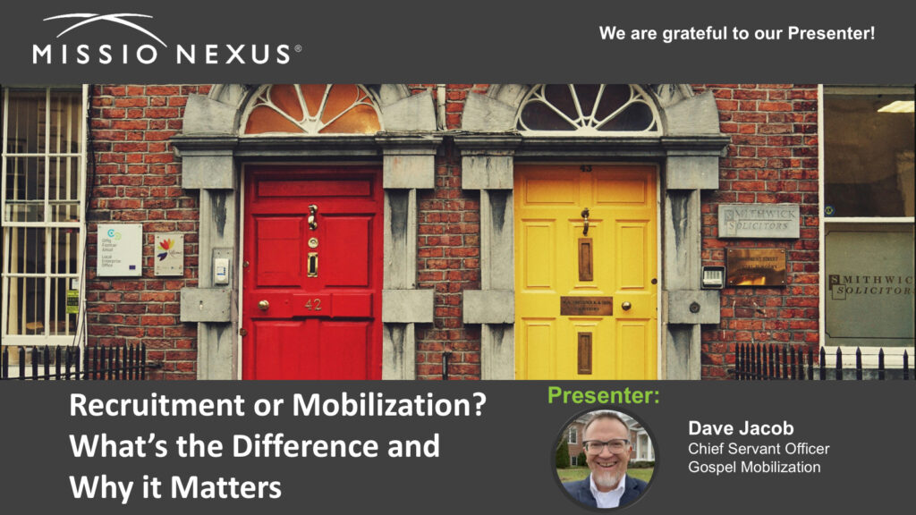 Is there a difference between recruiting new missionaries and mobilizing them? Our thoughts about this topic directly impact the numbers of new missionaries we send. That’s why it’s important that we define these terms and determine our particular philosophy of recruitment and mobilization.