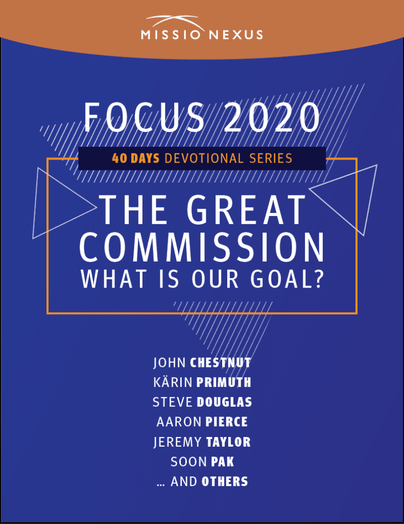 While our plenary speakers are the same, and our theme is still focused on the goal of the Great Commission, the format and time commitment is different. Rather than creating 70+ Zoom events, we are planning a 3-hour live, interactive broadcast for Thursday, September 24 at 1:00 PM EDT. This virtual event will be accompanied by a 40-day devotional series, written by leaders in the Missio Nexus community.