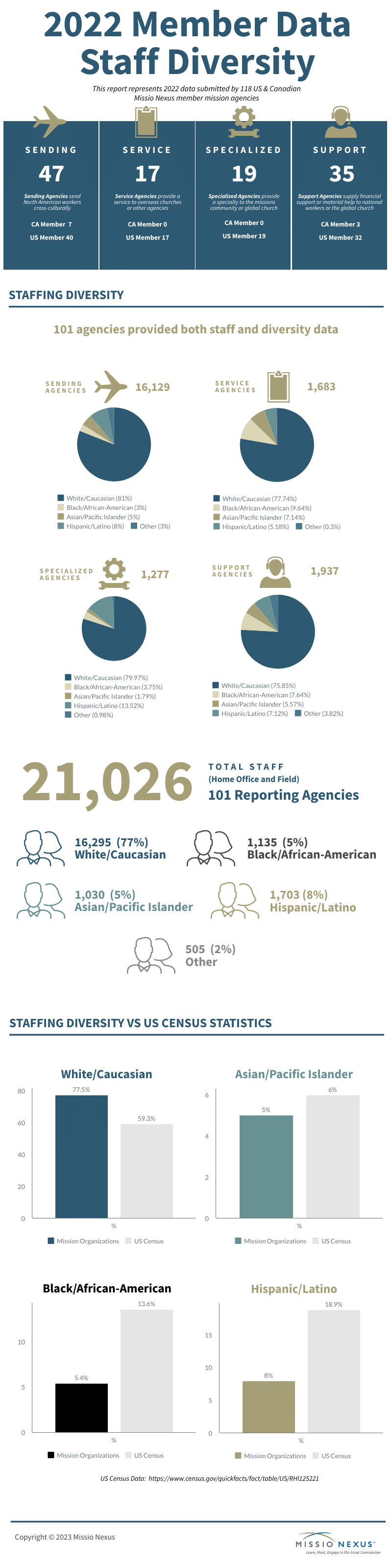 Missio Nexus continues to champion the desire to see all of God’s people taking hold of the command of Christ to take the Good News to the all the people of the world. The Missio Nexus community is a predominantly white community, but we see continued efforts to elevate the conversation and intentionality of this community to mobilize with equity across North America. Missio Nexus is seeking to partner with ethnic networks across North American that are non-white. Our goal is to foster relationship and be a catalyst for greater unity in the body of Christ to allow all who desire to be part of God’s magnificent work among the nations.