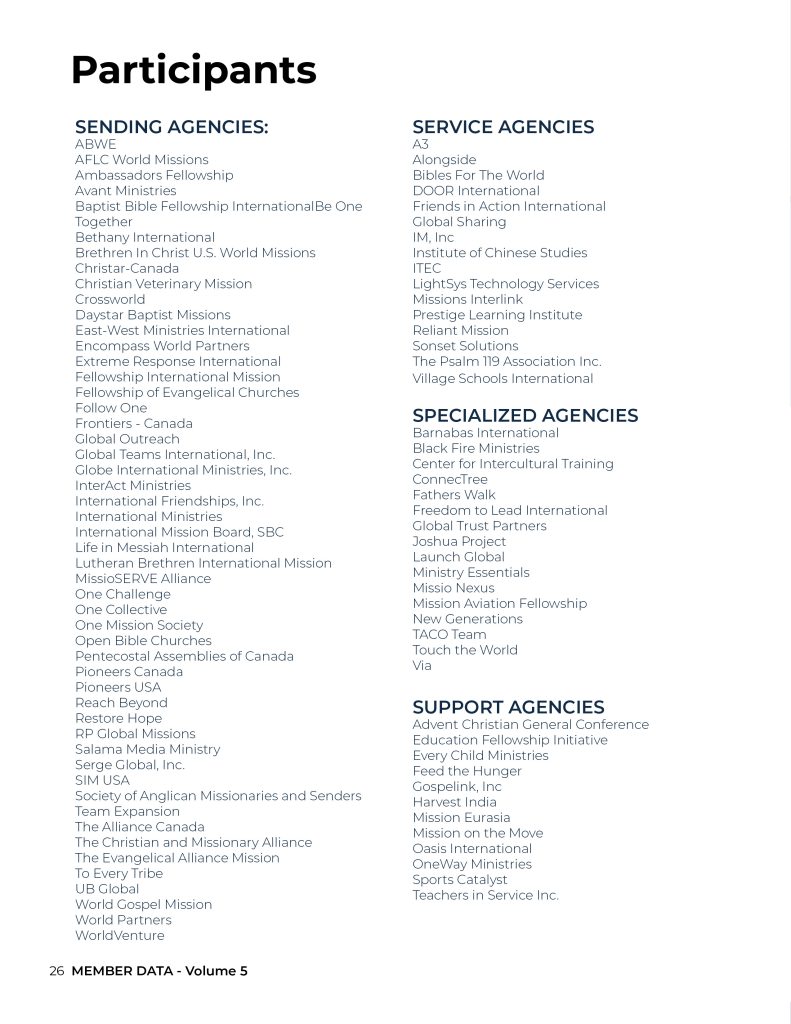 This comprehensive analysis equips agency leaders to assess organizational health, plan strategically for the future, and strengthen collaboration across the Great Commission community.